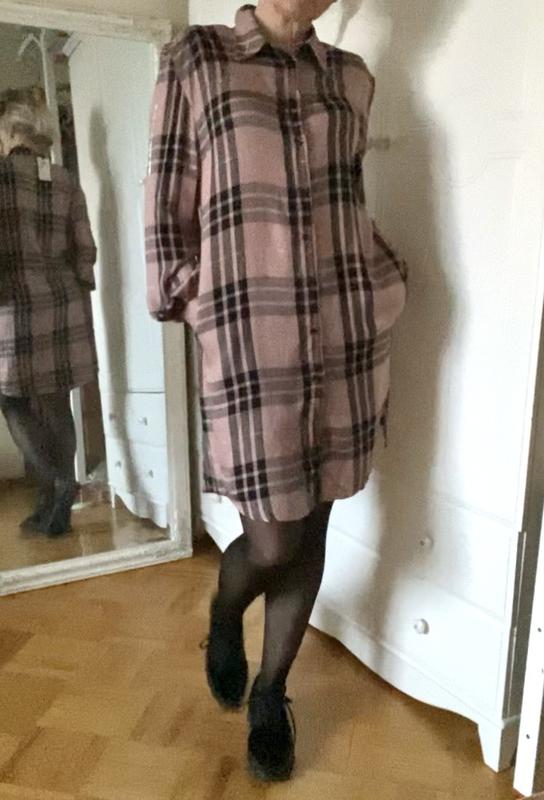 Штапельна приємна сорочка- туніка. З підплечніками. Від DIXIE. Розмір М. Заміри дівчина на фото 97-77-102. Зріст 168