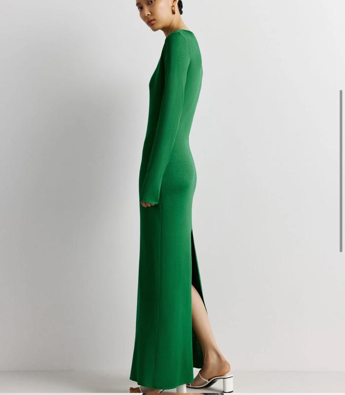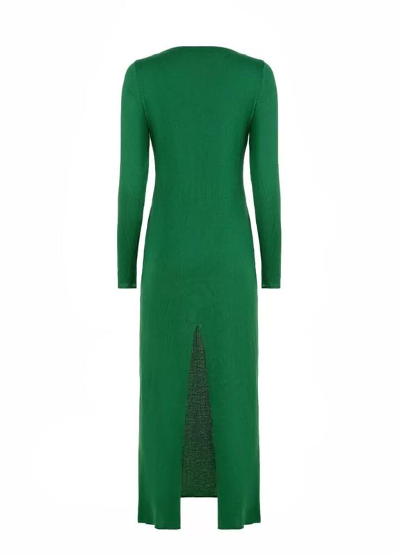 Силуетна максісукня з довгим рукавом. Головна прикраса вбрання – витончений розріз ззаду, що надає цій моделі неповторного шарму. Виготовлена з тонкої напівпрозорої тканини сукня приємно прилягає до тіла завдяки віскозі та шовку у складі. Модель представлена в базовому та контрастних сезонних забарвленнях. Довжина сукні: 144-146 см