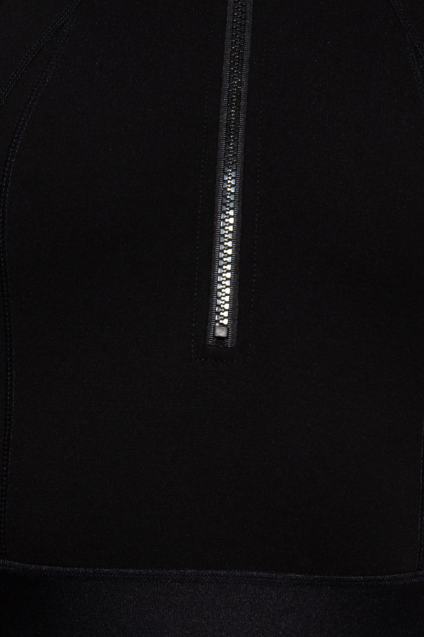 Black sleeveless dress from Diesel. Fastened with a zip, this design features an elastic waistband, stitching details and a decorative closure at the neck.