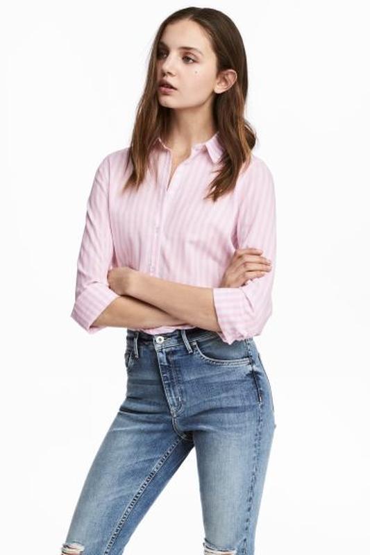 Нежно розовая приталенная рубашка в полоску H&M Стан - идеальный