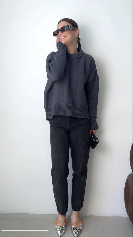 Красивий светр з французької пряжі з віскозою бавовною оверсайз Дуже красивий светр Якісна французька пряжа Бавовна, віскоза, еластан🔝 Йде в одному розмірі, крій оверсайз Щільний, тримає форму і при цьому дуже приємний до тіла Виглядає дорого ❗️Палітра: чорний, графіт❗️