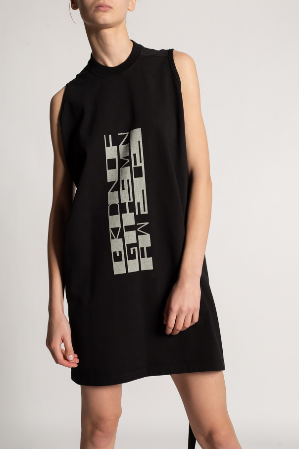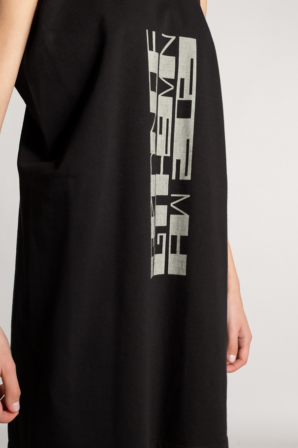 Black crewneck sleeveless top from Rick Owens DRKSHDW. Crafted from cotton with an oversize silhouette, this style showcases a light grey graphic print with the brand\'s logo on the front.