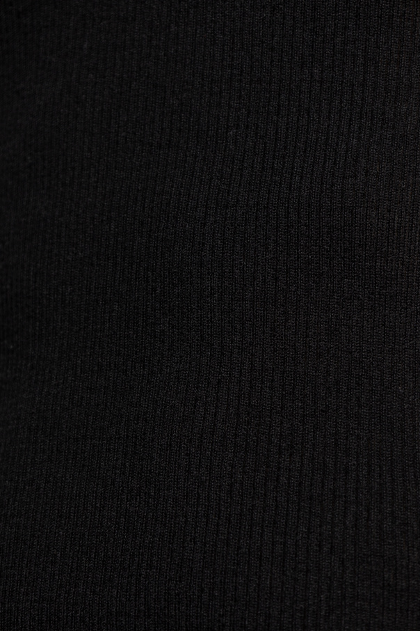 Black ribbed sleeveless T-shirt from Rick Owens. Crafted from cashmere, this design features the brand’s iconic, distinctive seam.