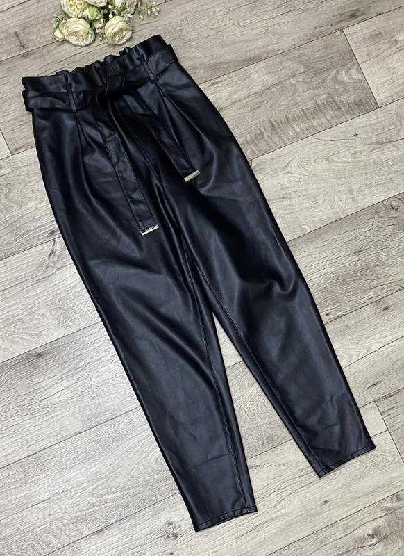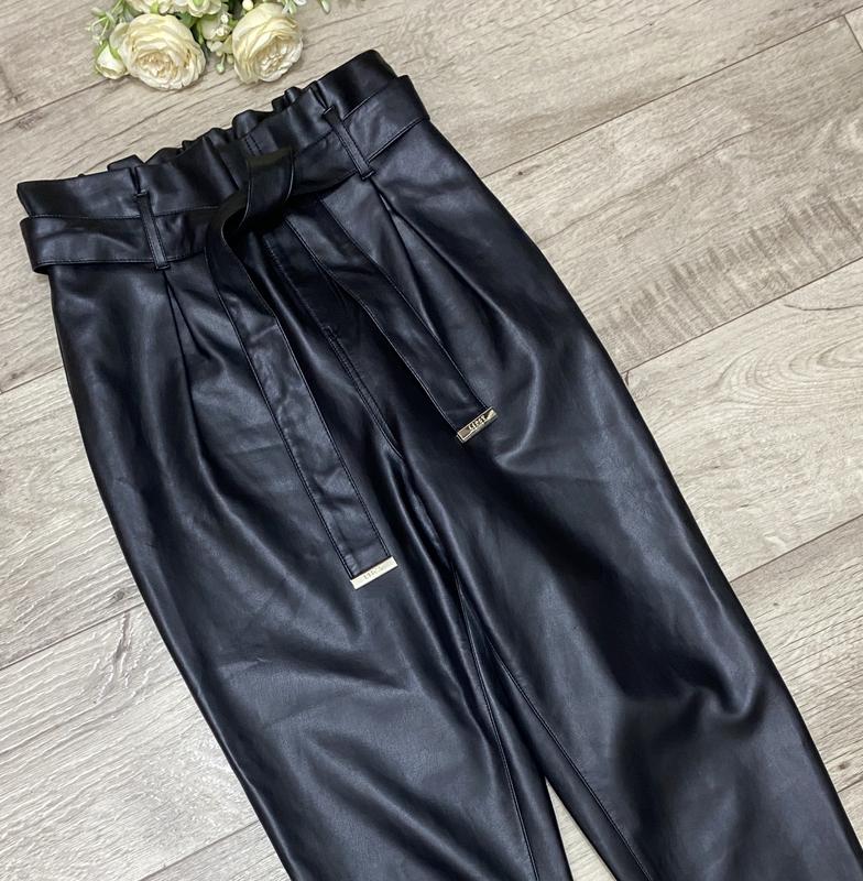 Штаны эко-кожа, кожаные штаны Mom LIPSY Состояние новое. Есть крепление от бумажной бирки Состав: 100% полиэстер Размер: M Замеры: * ПО пояса - 33,5 см (сзади на резинке, тянется до 45 см), * ПОБ - 51,5 см, * длина по внешнему шву (общая) - 101,5 см, * длина по внутреннему шву (шаг) - 69 см, * посадка спереди - 33 см, сзади - 45 см, * ширина штанины в самом низу изделия - 14 см