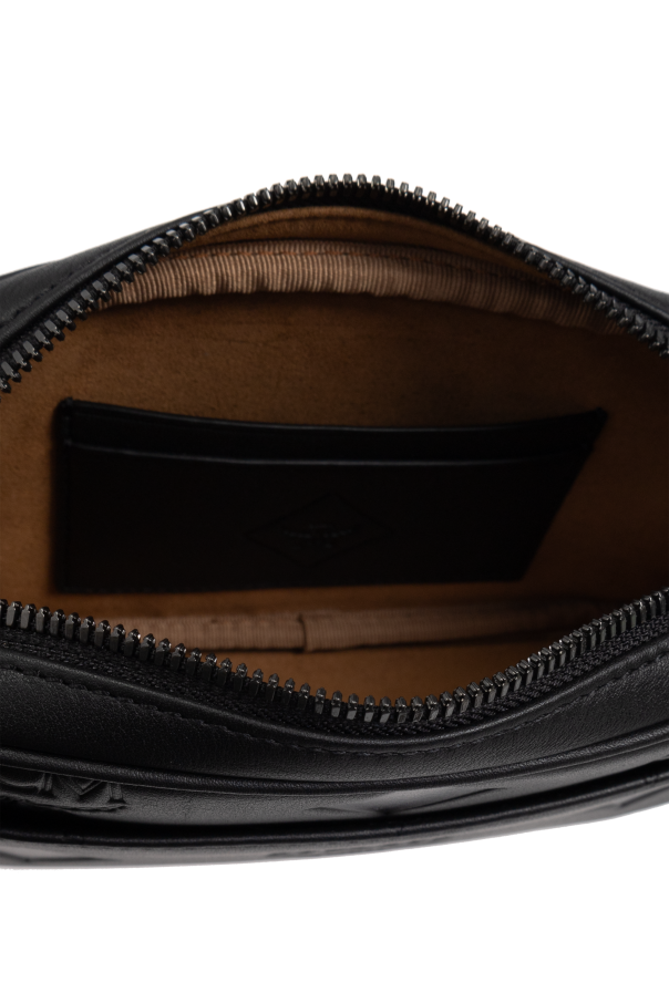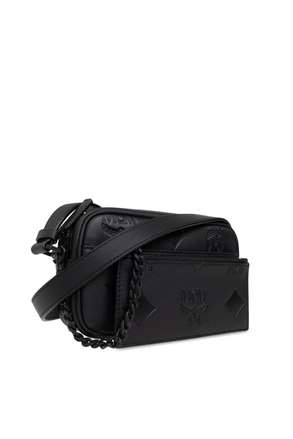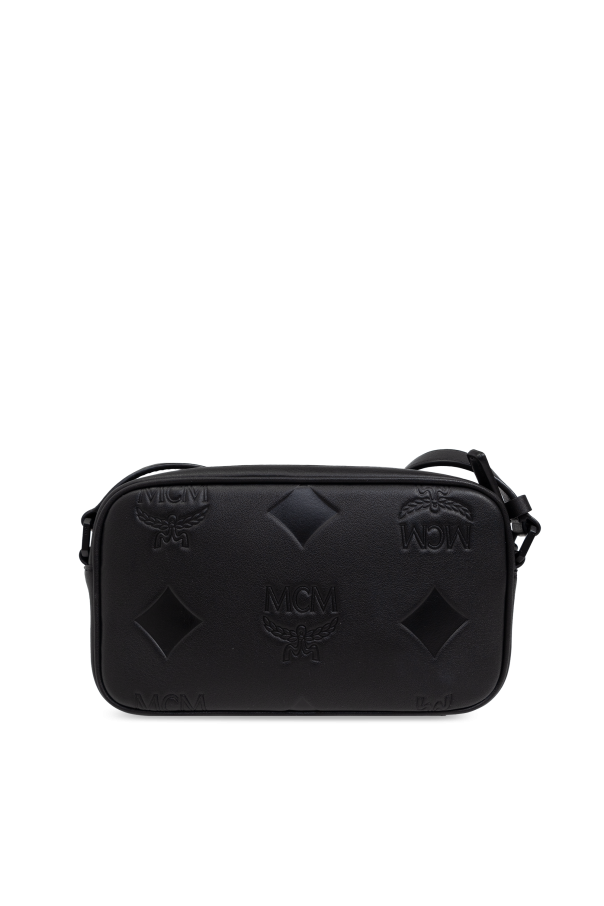 Introducing the Leather Shoulder Bag by esteemed designer MCM, a paragon of sophistication and practicality. Crafted from supple leather with a smooth finish, this bag features a sleek rectangular silhouette with gracefully rounded edges. The embossed \"MCM\" logo and geometric motifs impart a touch of opulence, making it a quintessential piece of exclusive men\'s accessories. The bag is meticulously designed with a versatile adjustable shoulder strap for optimal comfort. A sturdy zipper ensures secure storage, while the interior boasts a pocket lined with a contrasting fabric for your essentials. An additional pocket on the front, adorned with the embossed logo, provides extra space and style. Complemented by dark-hued metal elements, this bag epitomizes a harmonious blend of luxury and functionality. The back pocket features a removable pouch, and the interior is thoughtfully designed with two card slots, catering to the modern man\'s needs. Why Choose This Product? Iconic design with embossed details Adjustable strap for personalized comfort Secure zipper closure Interior lined with contrasting fabric for added elegance Additional storage with front pocket and removable pouch