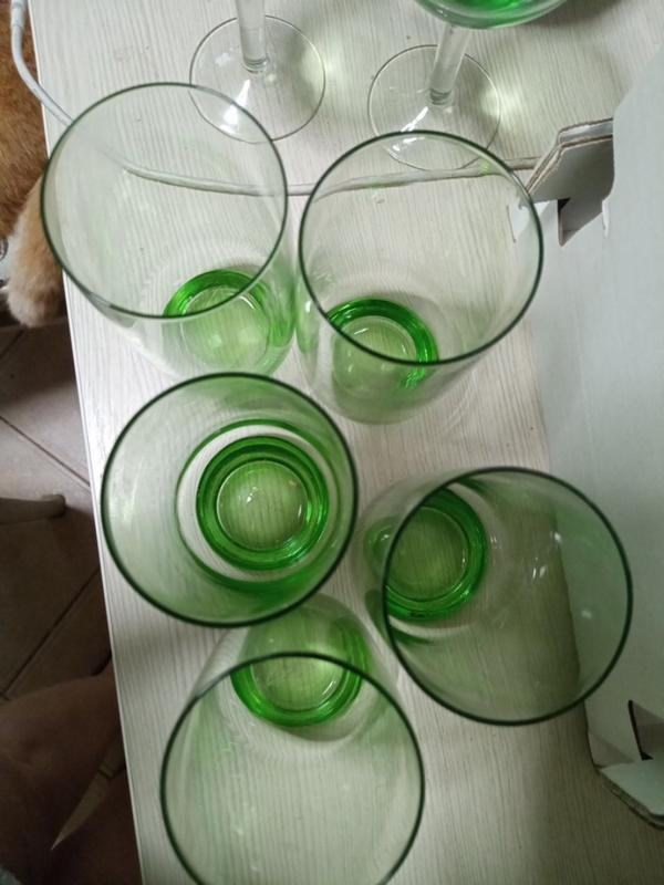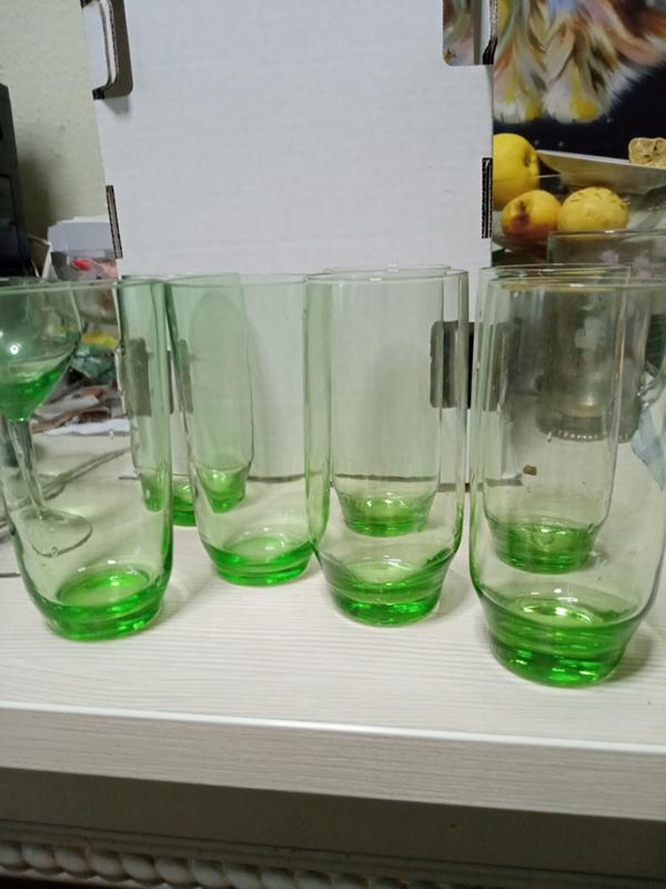 Продам 7 стаканів з зеленого скла, часів ссср. Стан ідеальний, можна сказати новий. Дуже гарний колір молодої зелені. 5 шт. абсолютно однакових і 2 шт на сантиметр ширші зверху. В користуванні різниці не буде помітно зовсім.Висота і колір і місткість одинакові. Продам разом. За всі 550 гр. .Ціна вказана за 1 стакан з урахуванням комісії сайта 15процентів.