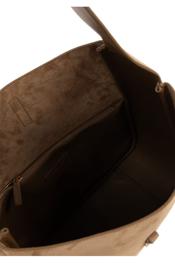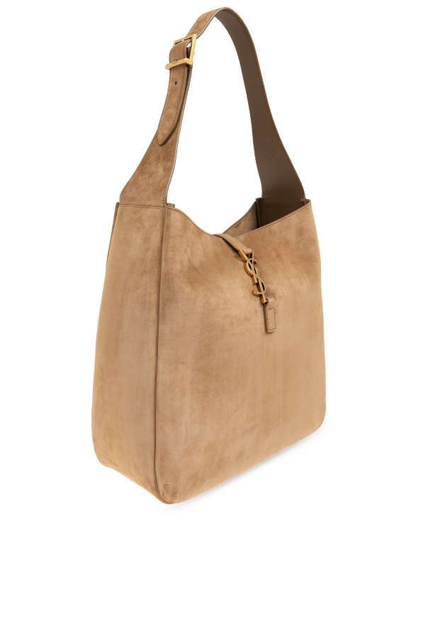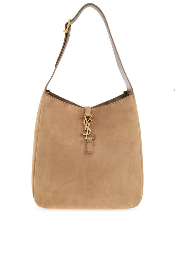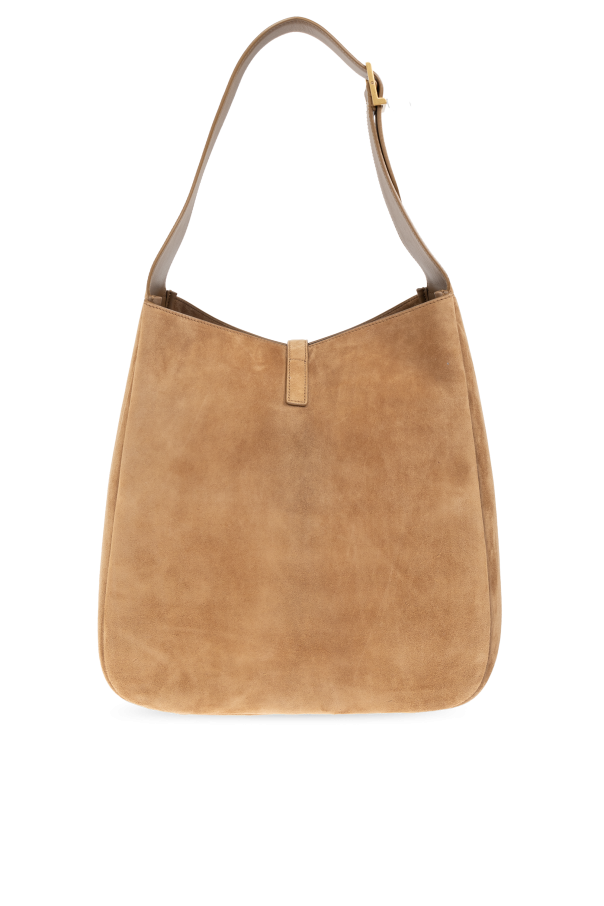 Introducing the ‘Le 5 A 7 Large’ Shoulder Bag from the illustrious house of Saint Laurent. This exquisite bag embodies a perfect symbiosis of elegance and functionality, crafted meticulously from sumptuous brown suede. The classic bucket shape exudes timeless sophistication, enriched by a distinctive gold monogram logo on the front, a testament to the brand\'s esteemed heritage. The bag\'s adjustable strap ensures a personalized fit, catering to your unique style preferences. Inside, the suede-lined interior features a zippered pocket, offering a refined solution for organizing your essentials. The bag secures with a chic clasp closure, harmonizing practicality with elegance. Why Choose This Product? Timeless Design: Classic bucket shape with luxurious suede. Renowned Brand: Crafted by the iconic Saint Laurent. Functional Elegance: Adjustable strap and internal zippered pocket.
