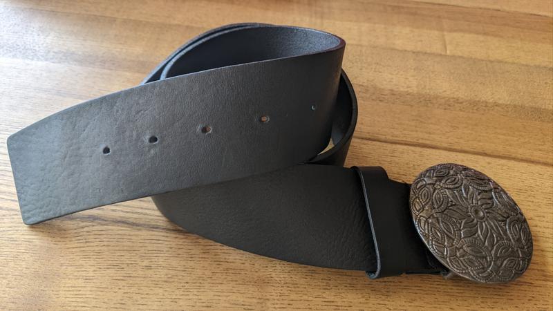 Ремень Themata Швейцария, кожа толстая и мягкая, выполнен изгибом так как ремень широкий 5,5 см, что бы естественно огибать талию. Общая длина ремня 105 см, от пряжки до первого отверстия 80 см, до крайнего 102 см. Цена в европейских каталогах в районе 150 евро.