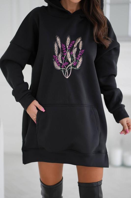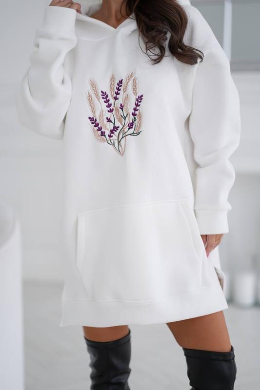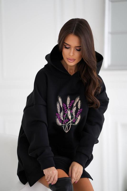 Худи длинное Модель 7537 Размер: S-M (42-44), L-XL (46-48) ➡️ худи oversize ➡️трикотаж трьохнитка на флісі ➡️спущенный рукав ➡️боковые карманы ➡️машинная вышивка ➡️капюшон Цвет: черный, молочный Длина: Перед-82 см Зад- 85 см Рукав -50 см (Плечи спущены) Удлиненный худи свободного кроя на флисе. Мягкая ткань, приятная к телу. Перед декорировано контрастной вышивкой. Есть действующие карманы.