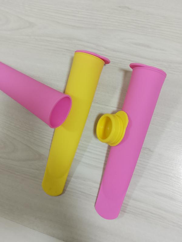 Силиконовые формы с крышкой для мороженого/ сока/набор 3 шт. Цвет розовый, желтый. D-4 см. Длина 20 см Цена за набор.
