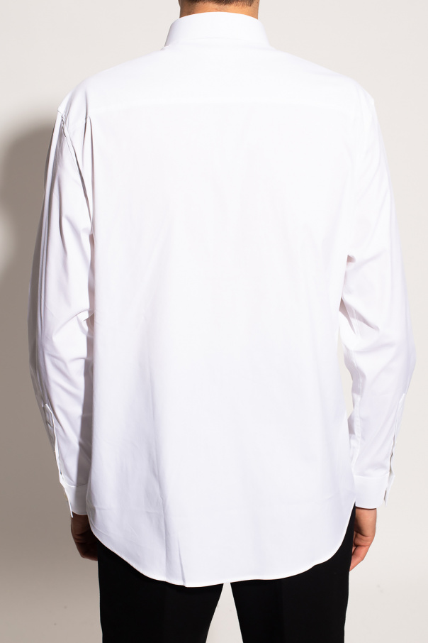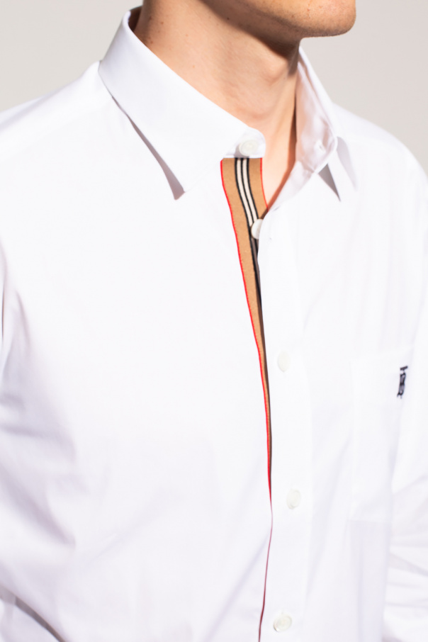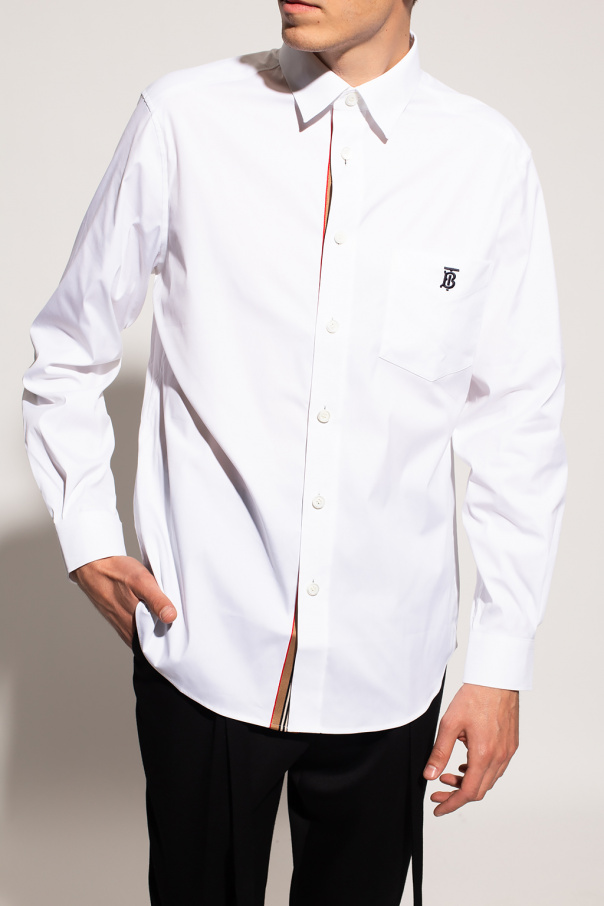 White shirt from Burberry. Made of cotton, this garment features button fastenings, a chest pocket embroidered with a black logo and long sleeves with button cuffs.