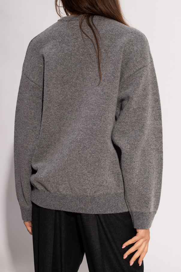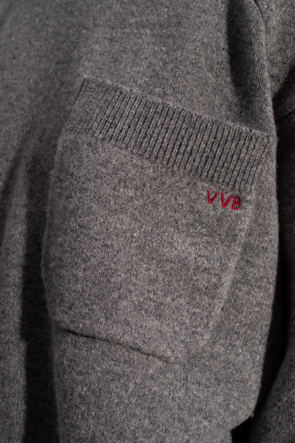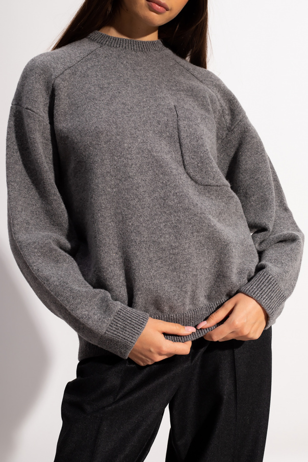 Grey crewneck sweater from Victoria Victoria Beckham. Crafted from a wool and cotton blend, this style showcases ribbed edges and a slip chest pocket accentuated with red logo embroidery.