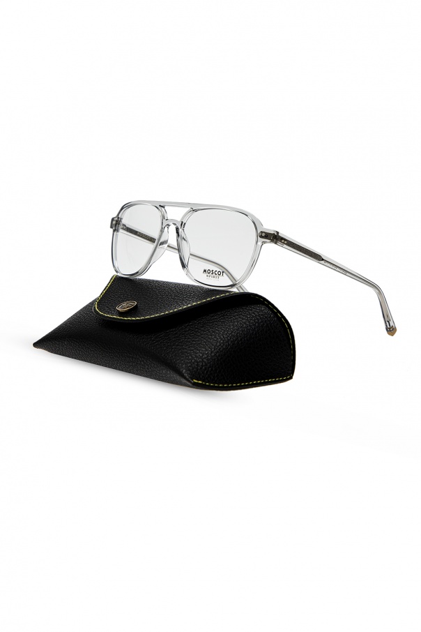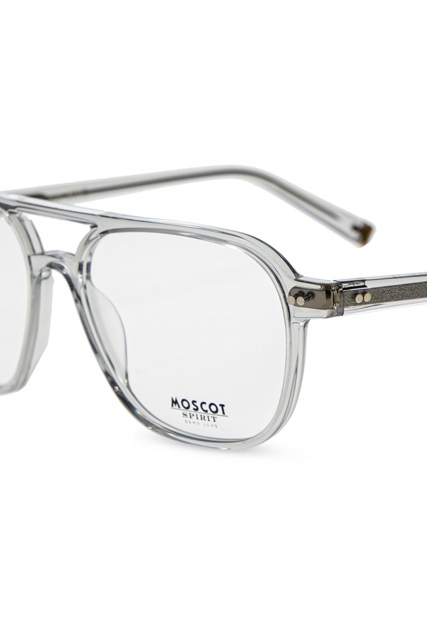 Translucent light grey ‘Bjorn’ optical frames from Moscot. This pair was hand-crafted from acetate and metal.