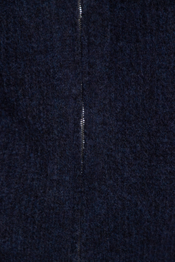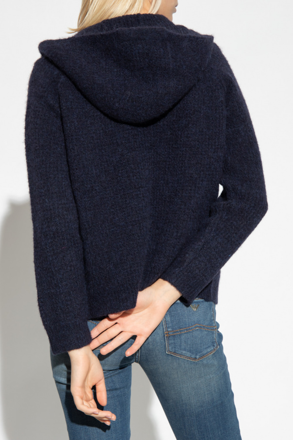Navy blue hoodie from Emporio Armani. Crafted from a wool blend, this style features a two-way zip fastening, two slip pockets, long sleeves and an elasticated bottom hem and cuffs.