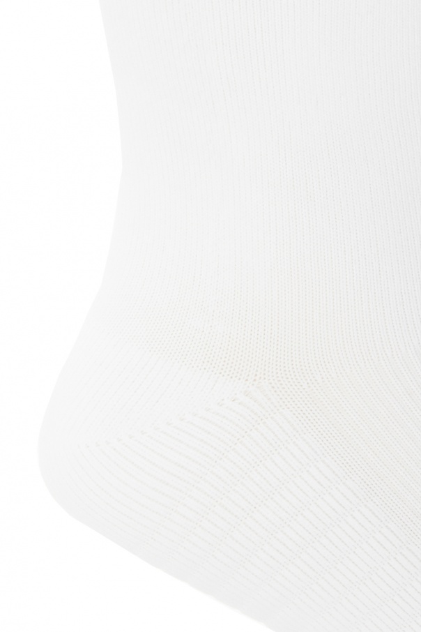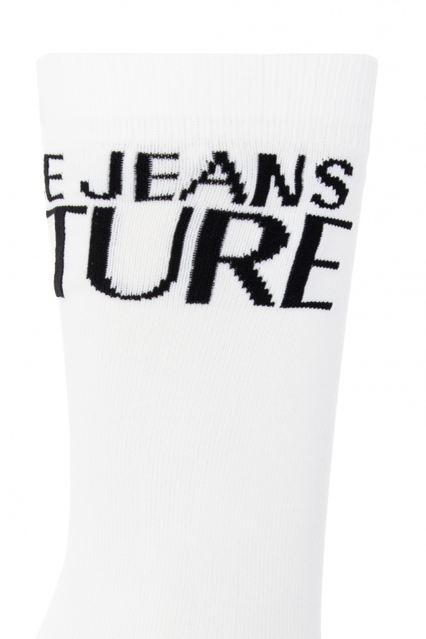 White socks with a black logo embroidery from Versace Jeans Couture.