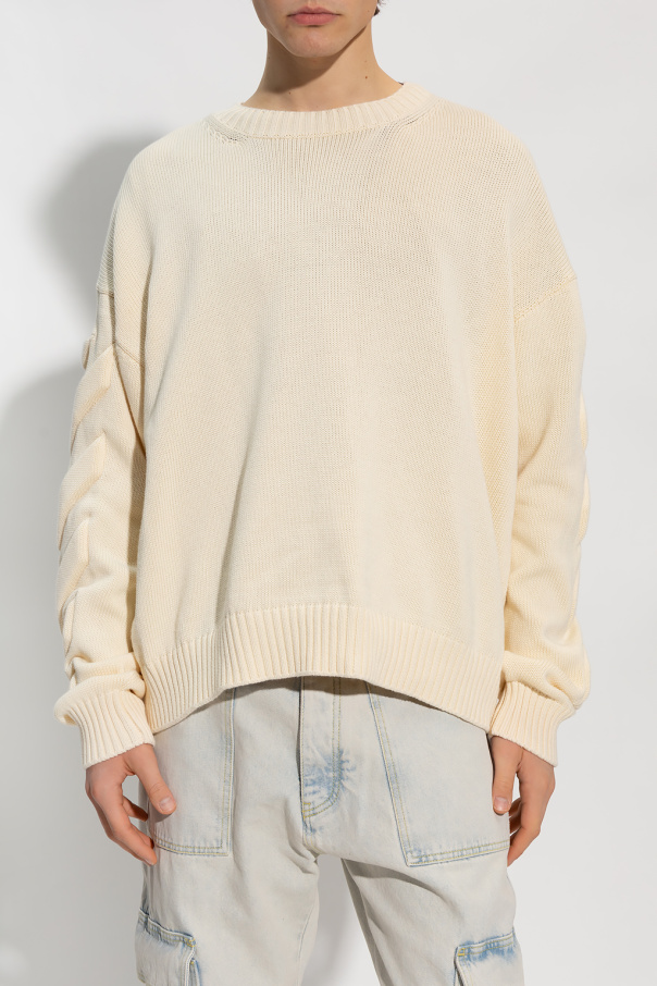 Cream sweater from Off-White. Made of cotton, this design features raised logo details at the back and sleeves as well as ribbed trims at the crew neck, hem and cuffs.
