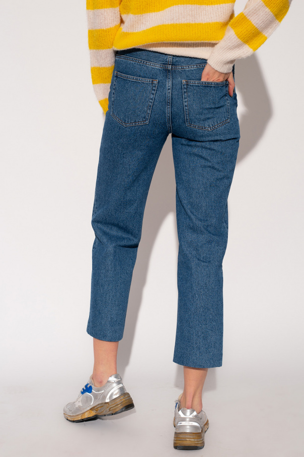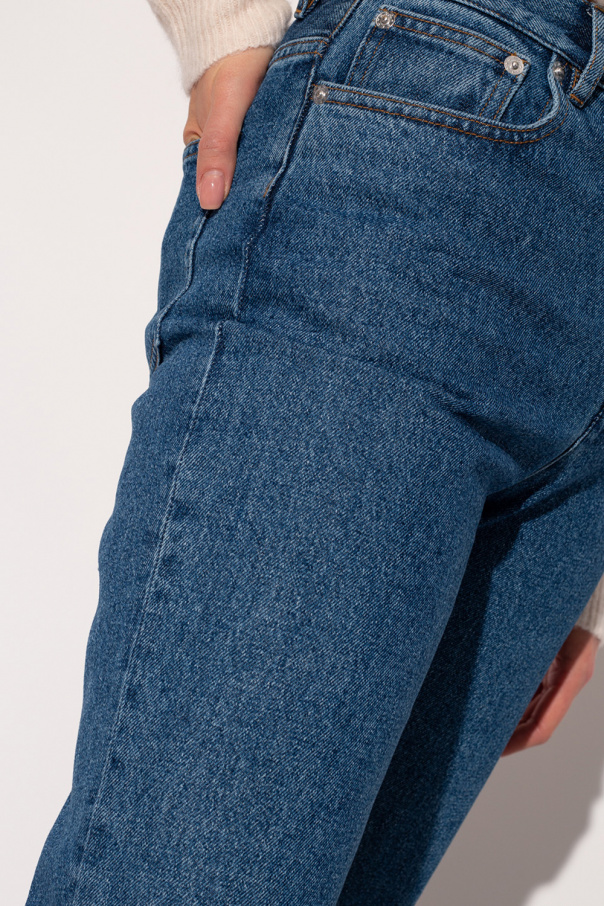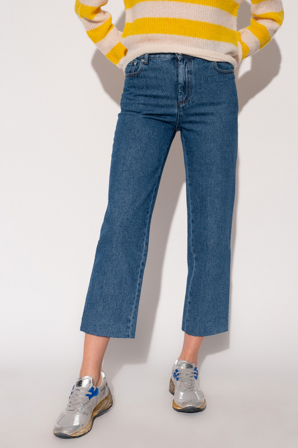 Navy jeans from A.P.C. Made of cotton, this pair falls down with slightly tapered legs and is complete with five slip pockets as well as a zip and button closure.