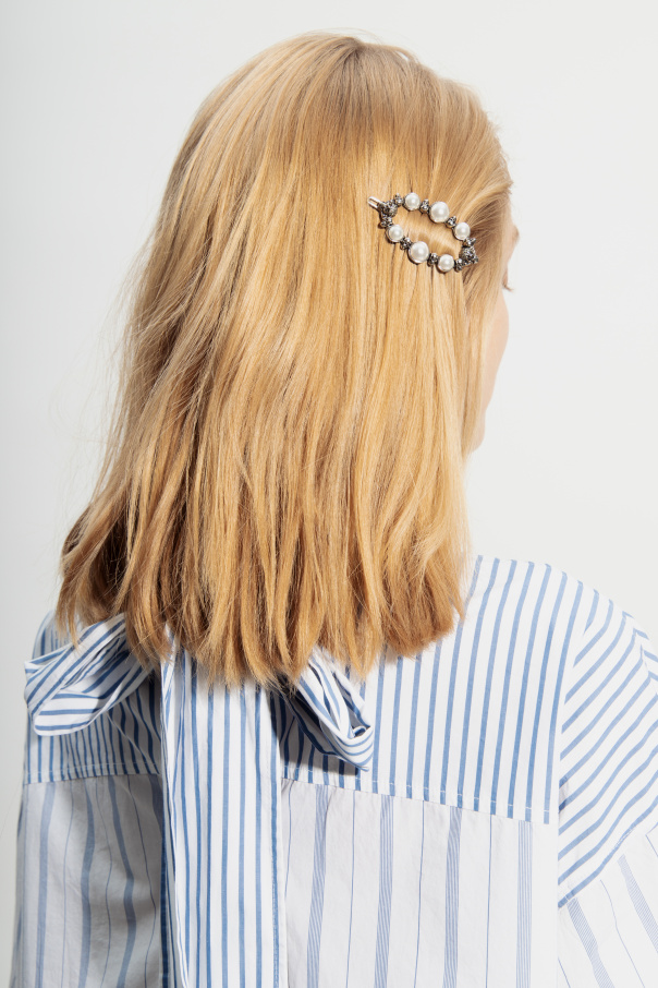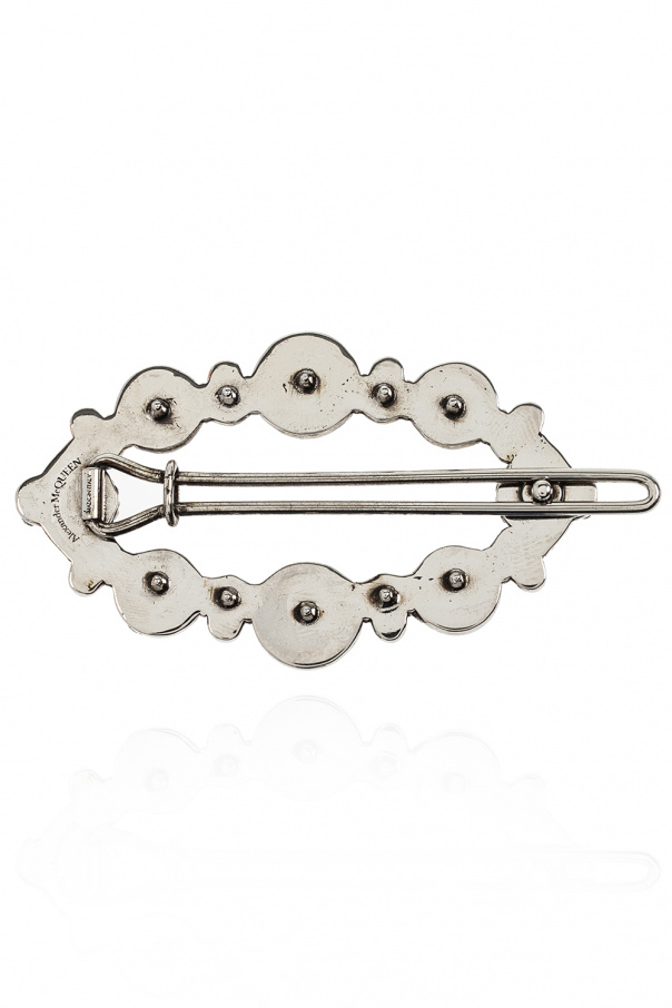 Silver-tone hair clip from Alexander McQueen. Made of brass, this design is embellished with pearls, Swarovski crystals and the brand’s signature skulls.