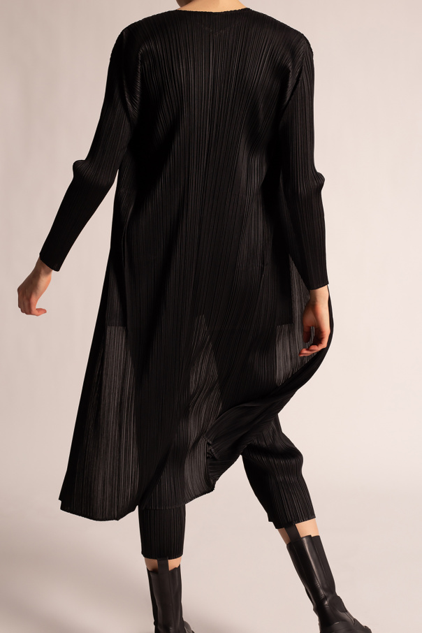 Black pleated cardigan with long sleeves from Issey Miyake Pleats Please.