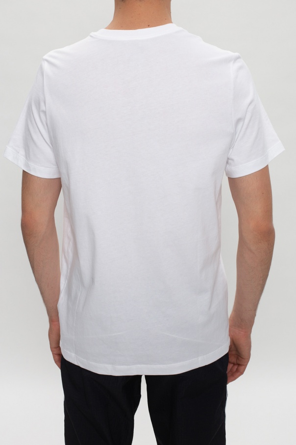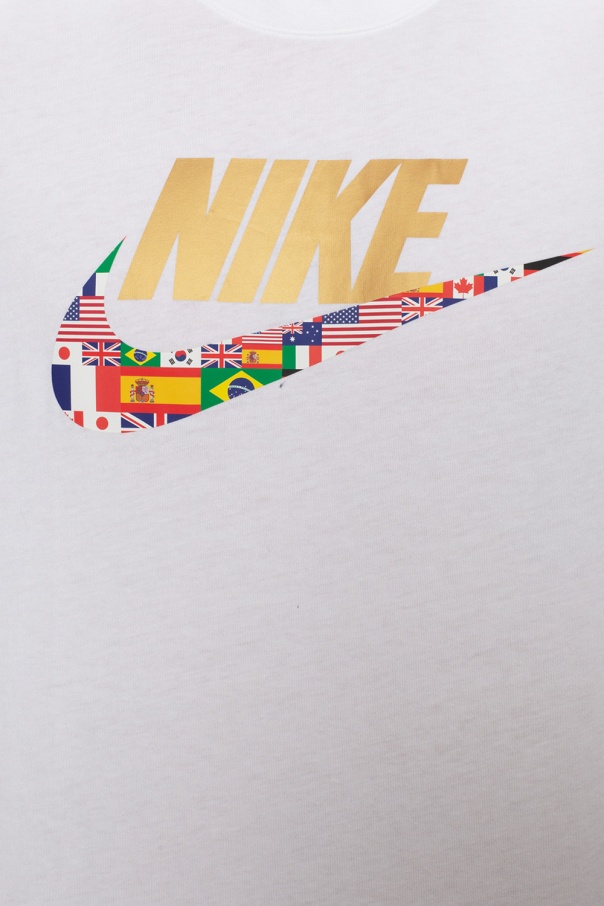 White T-shirt from Nike. Made of cotton. Front decorated with a colorful logo print. Round neck.