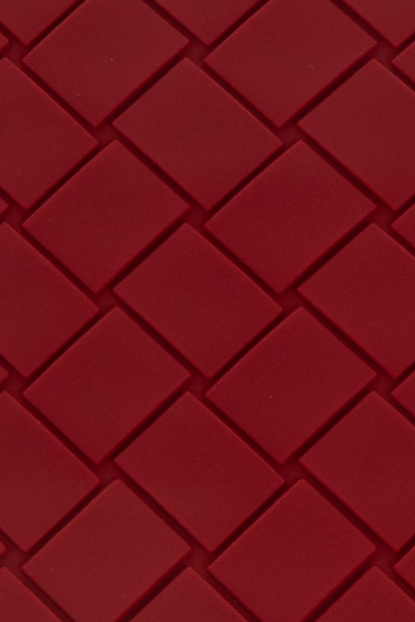 Red iPhone 13 Pro case with a strap from Bottega Veneta. Made of silicone, this item showcases the brand’s signature Intrecciato weave.