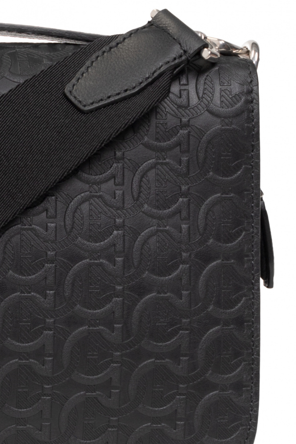 Black shoulder bag from Salvatore Ferragamo. Crafted from calf leather embossed with the brand's signature 3D Gancini pattern, this design features a two-way zip fastening, an external slip pocket on the front, a side handle, a detachable and adjustable shoulder strap, silver-tone metal hardware and one internal compartment with a zip pocket.
