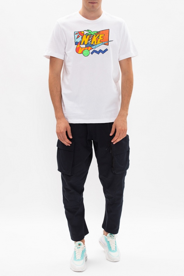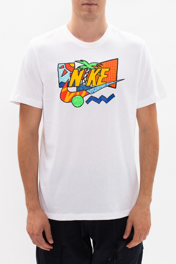 White crewneck T-shirt from Nike. Crafted from cotton, this item comes decorated with a colorful logo print.