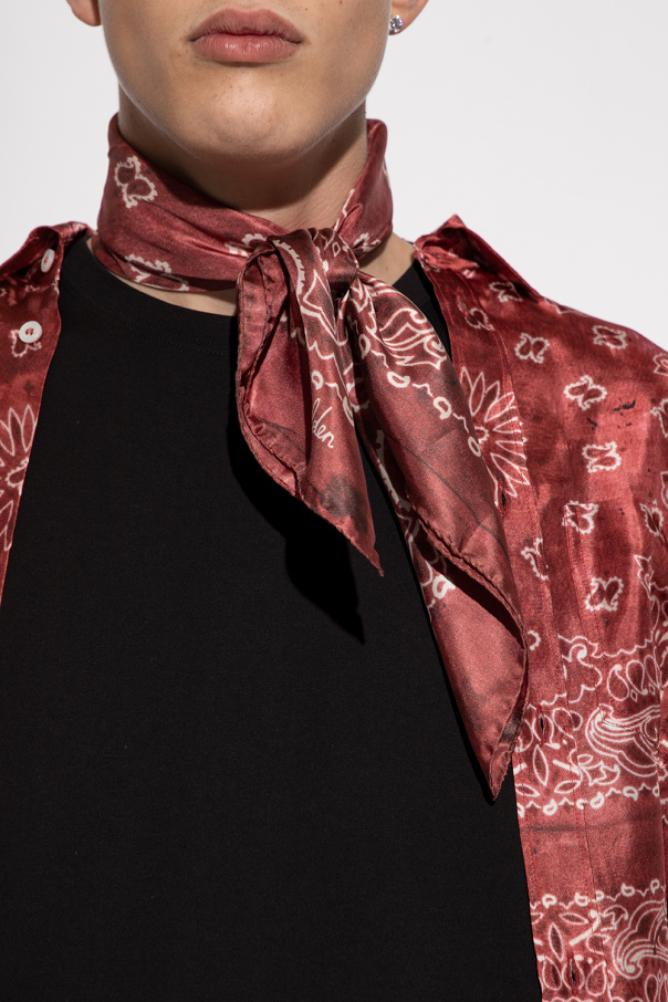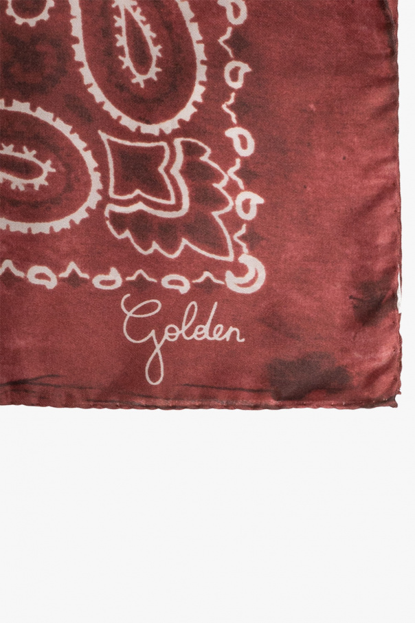 Red scarf with a white paisley pattern from Golden Goose. Made of silk.