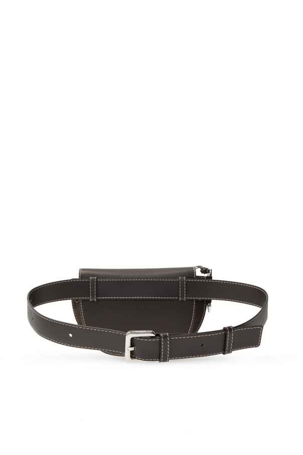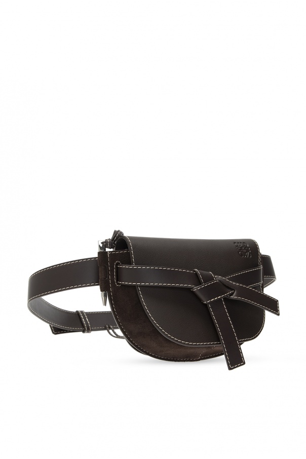 Brown ‘Gate’ belt bag from Loewe. Crafted from leather, this design showcases an embossed logo for the brand recognition. It is complete with magnetic snap fastening, a detachable waist strap with adjustable length, silver-tone metal hardware and interior with one compartment and two slip pockets, designed to store all your valuables.