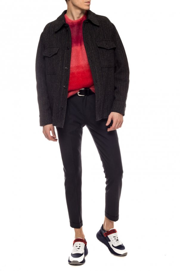 Maroon and red sweater from Isabel Marant. Crafted from a mohair and wool blend, this garment is enriched by ribbed trims.