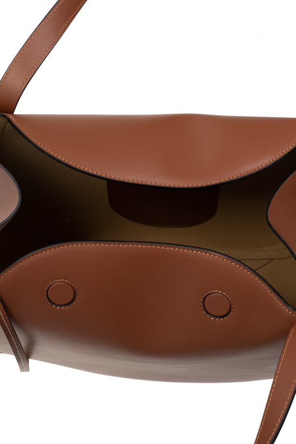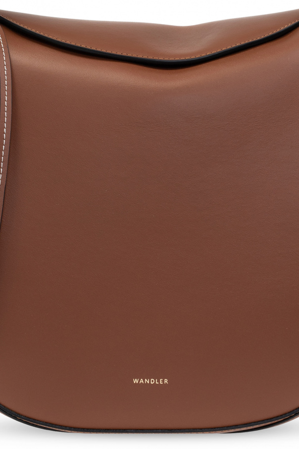 Brown ‘Lin’ handbag from Wandler. Made of calf leather, this design secures with a magnetic fastener and showcases an embossed logo, a snap-fastened pocket at the back, two half-round handles, gold-tone metal hardware and one internal compartment with one slip pocket.