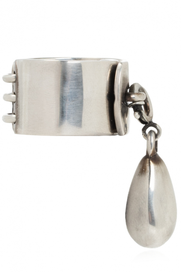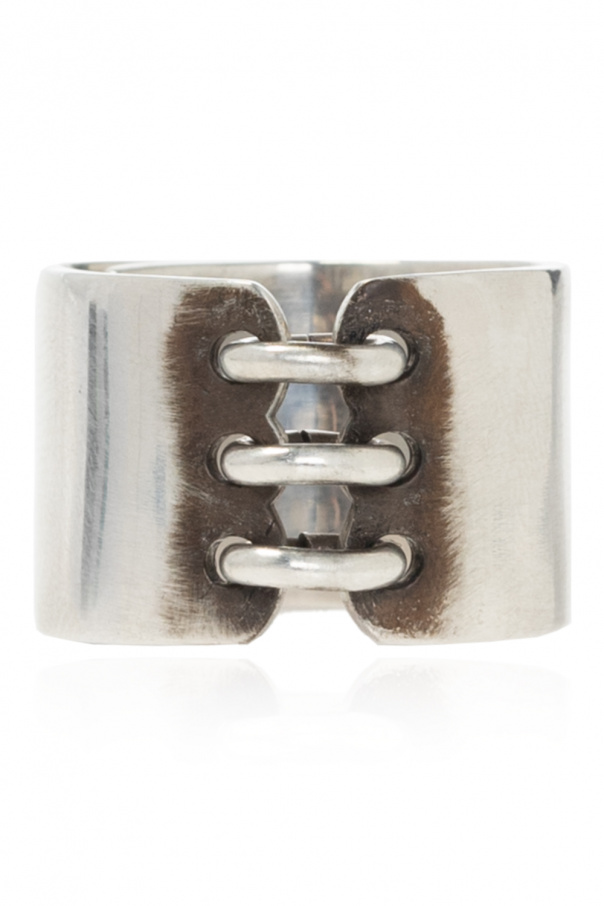 Silver ring with a decorative appliqué from Ann Demeulemeester.