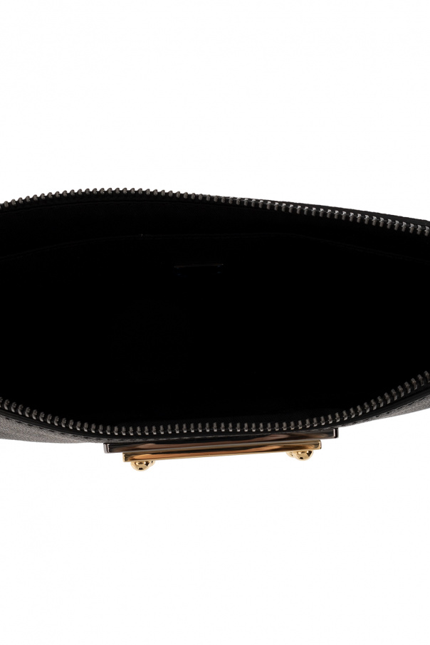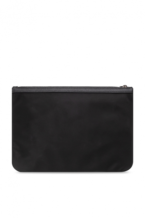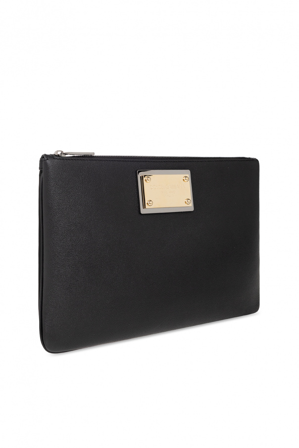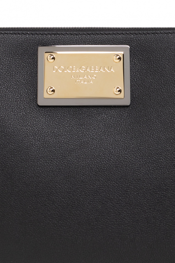 Black pouch from Dolce & Gabbana. Crafted from calf leather and fabric, this design secures with a zip and features gold-tone and black hardware with an engraved logo and one internal compartment with a slip pocket.