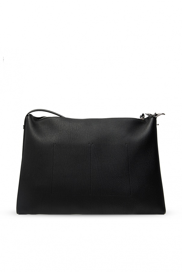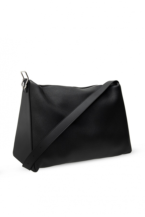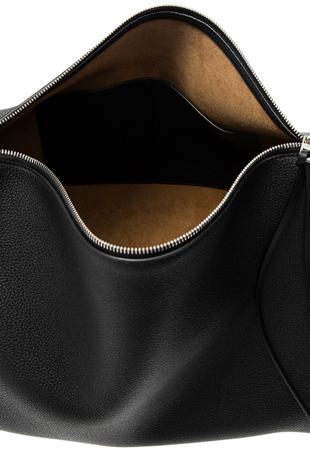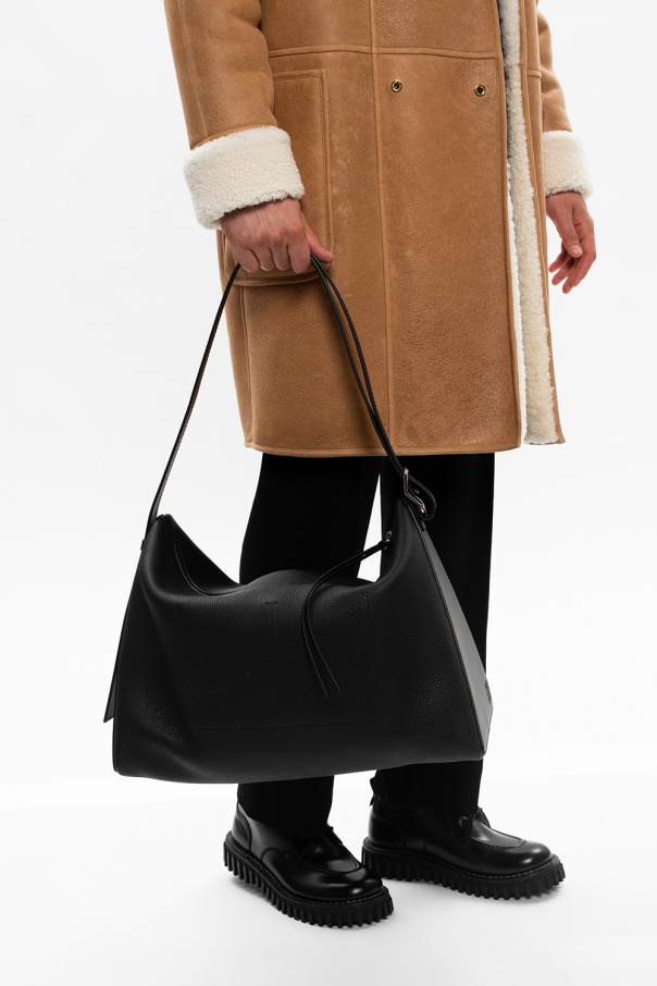 Black ‘Berlingo’ shoulder bag from Loewe. Crafted from textured leather, this style fastens with a zip and boasts the label’s embossed logo. The interior features brown lining and one compartment with two slip pockets.