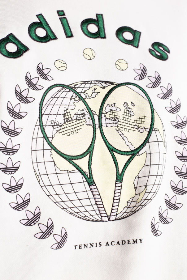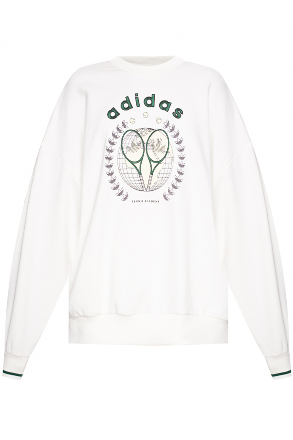 Cream crewneck sweatshirt from ADIDAS Originals. Made of cotton and recycled fabric, this garment features ribbed trims as well as an embroidered and printed logo pattern in green, yellow and pink.