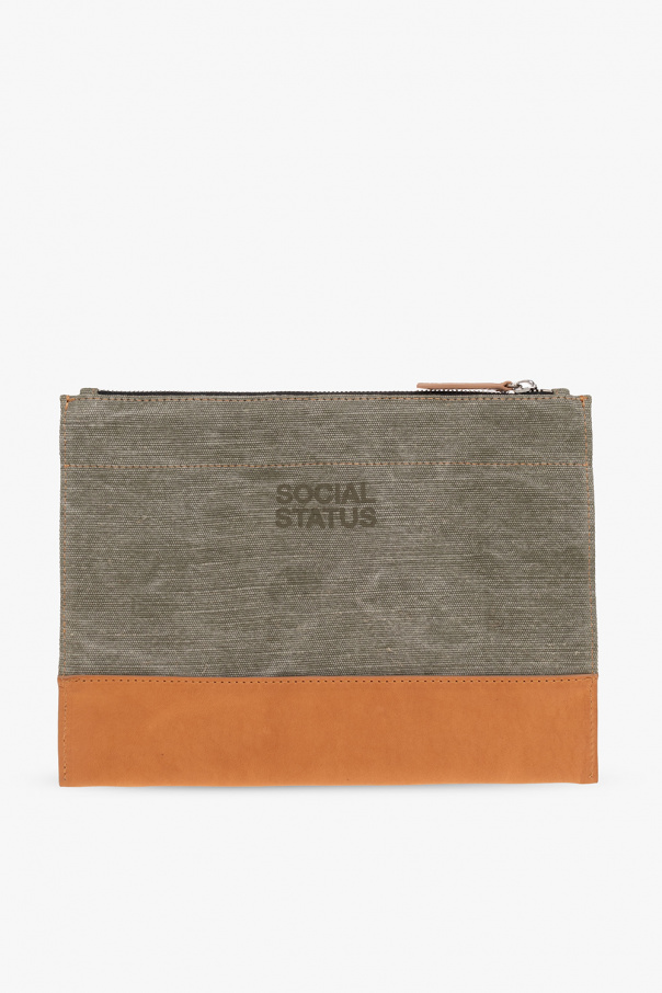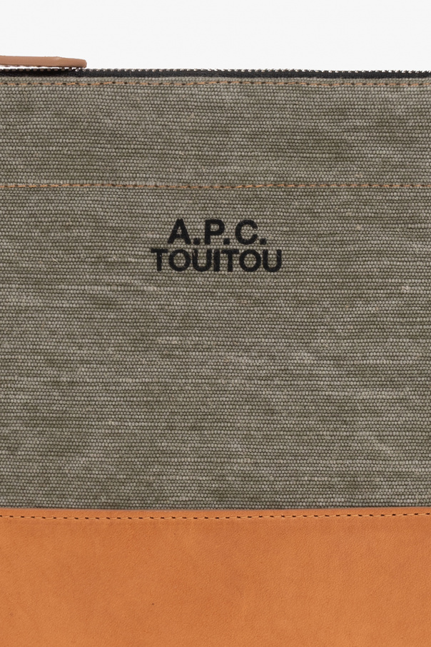 Greyish brown ‘Pochette Pecuchet’ handbag from A.P.C. Crafted from jute and tanned leather, this design features a zip fastening and one internal compartment.