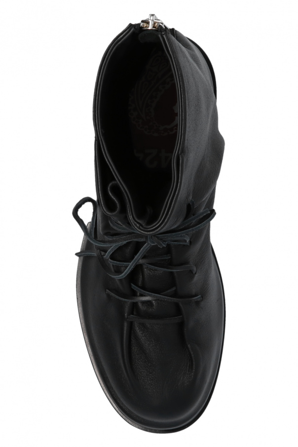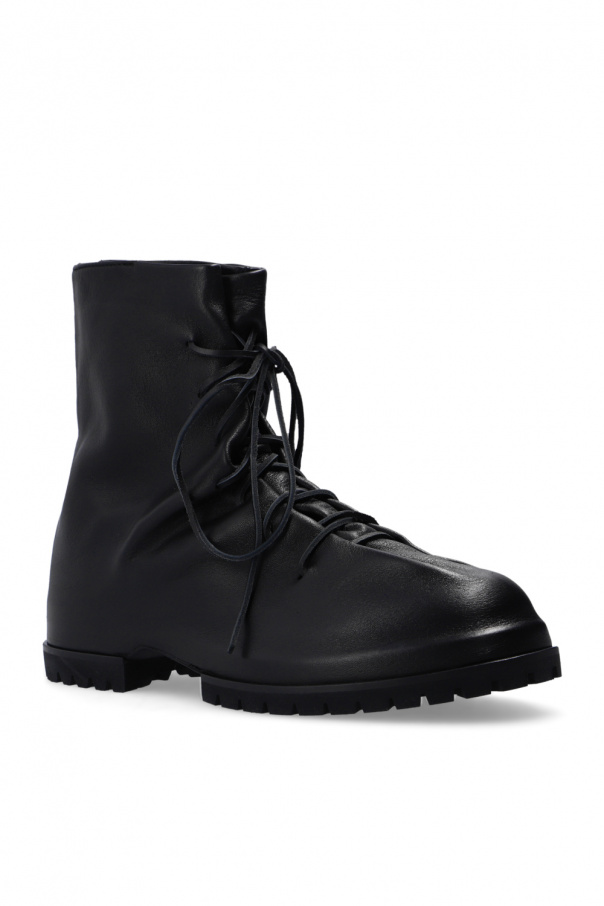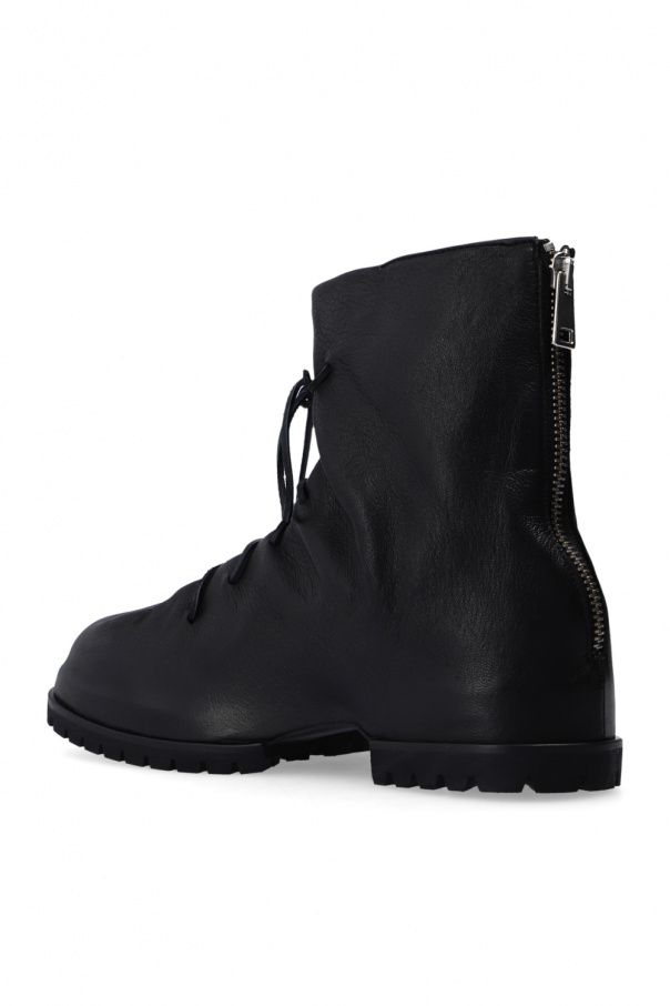 Black ankle boots from 424. Made of leather, this pair features a back zip closure and a black rubber sole.