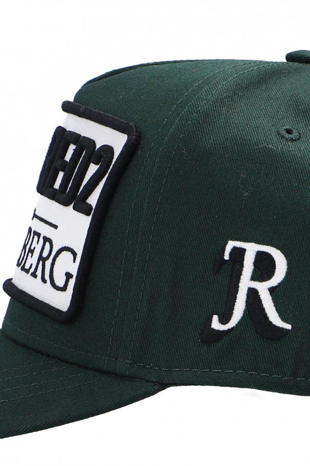 Green baseball cap from Dsquared2 x Rosenberg x VITKAC – three brands in one. Designed exclusively for the ‘Dsquared2 for Rosenberg’ limited collection, this cotton-crafted item was emblazoned with a patch and black and white embroidery with logo and outfitted with an adjustable strap on the back.