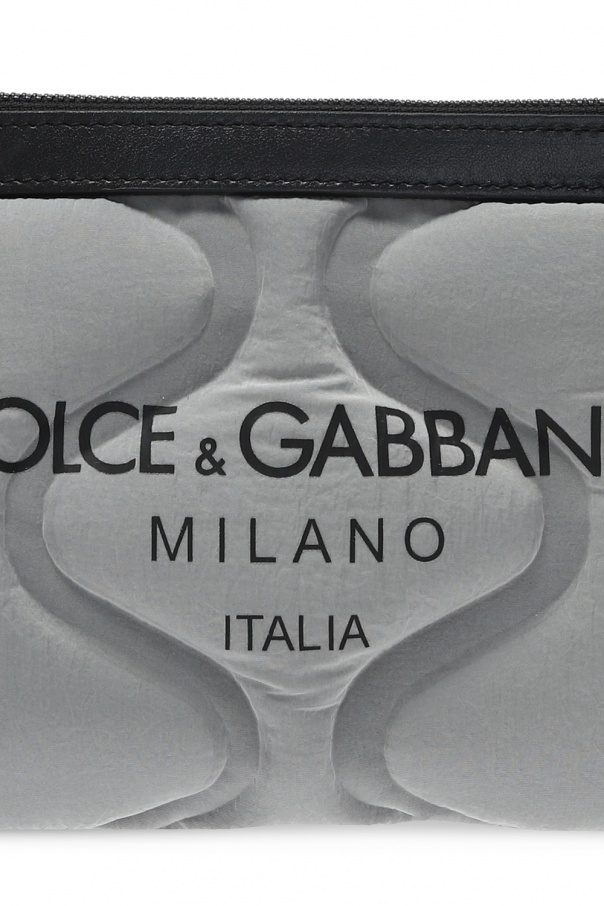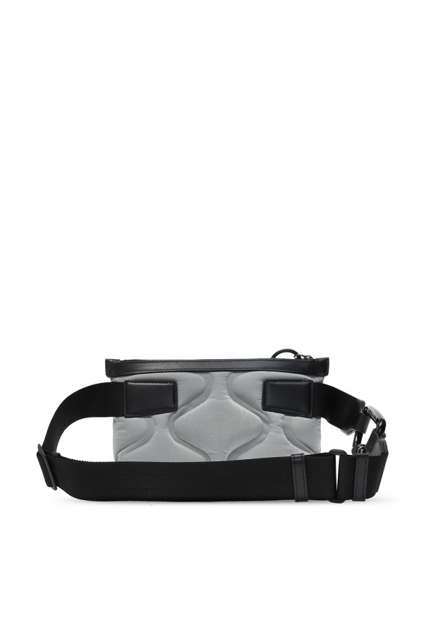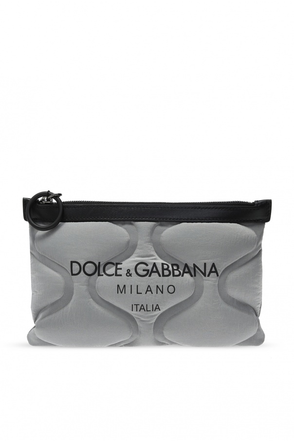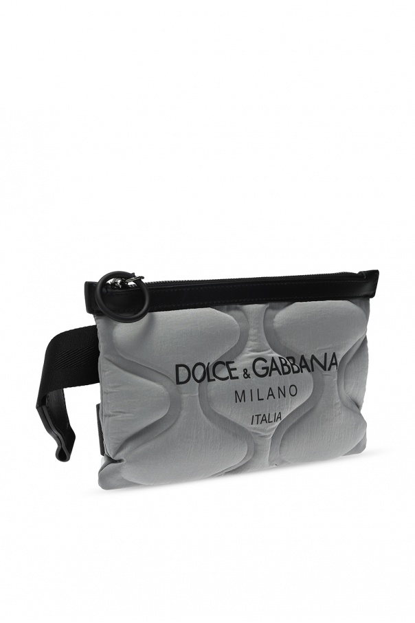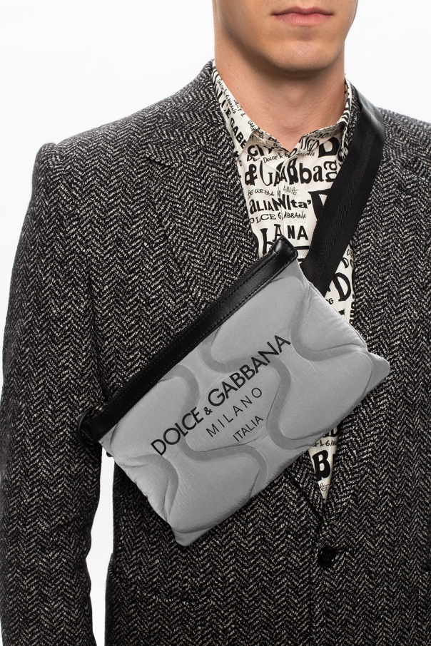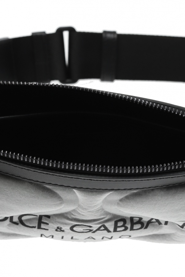 Silver-tone 'Palermo Fanny' belt bag from Dolce & Gabbana. Rendered in the use of reflective fabrication, this item fastens via zip and displays tactile logo for the brand recognition. It also features an adjustable strap and pink clad interior with one compartment and one slip pocket.
