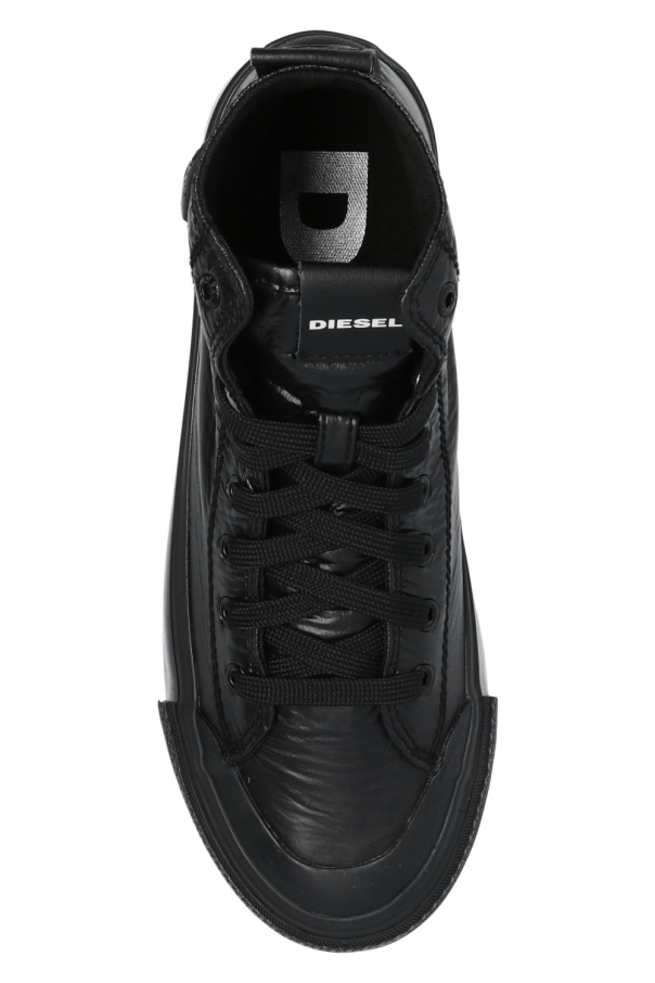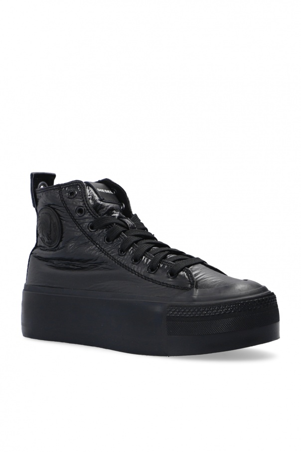 Black ‘S-Astico’ high-top sneakers from Diesel. Showcasing logo patch on the front, this lace-up pair is complete with a logo appliqué on the side and a black rubber sole at the base.