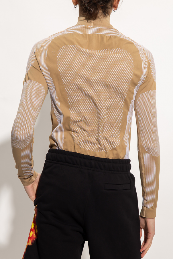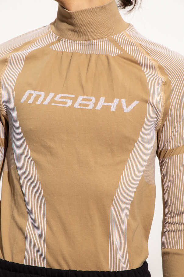 Brown ‘Sport Active Classic’ T-shirt from MISBHV. Crafted from breathable thermo-active fabric. 60% of the yarn is recycled. This design features a stand-up collar, long sleeves, elastic trims, distinct stitching details and logo embroidery. This product was made in Poland with the use of 100% energy from solar panels, to reduce negative impact on our environment.