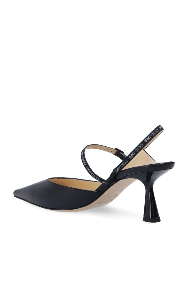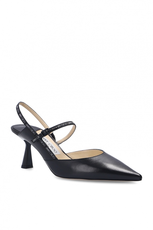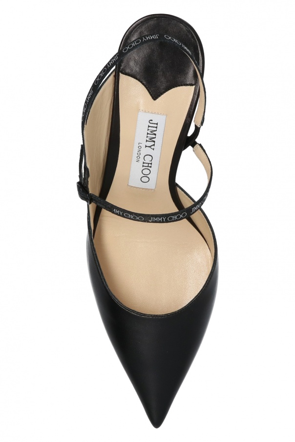 Black 'Ray 65' slingback pumps from Jimmy Choo. Crafted from leather, this design has buckle strap closing, woven white logo and beige leather sole.
