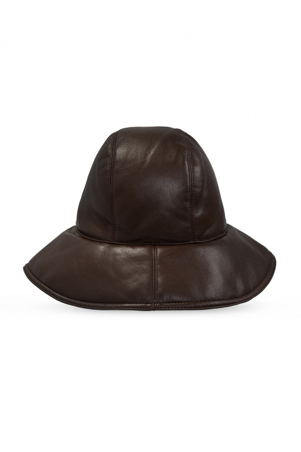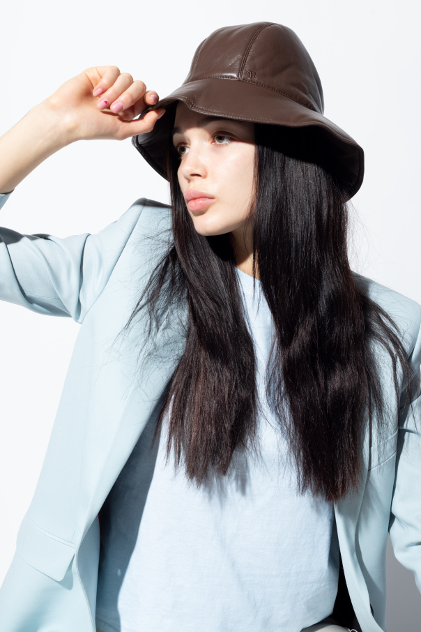 Dark brown ‘Cameron’ hat from Nanushka. Crafted from vegan leather, this item showcases an embroidered logo.