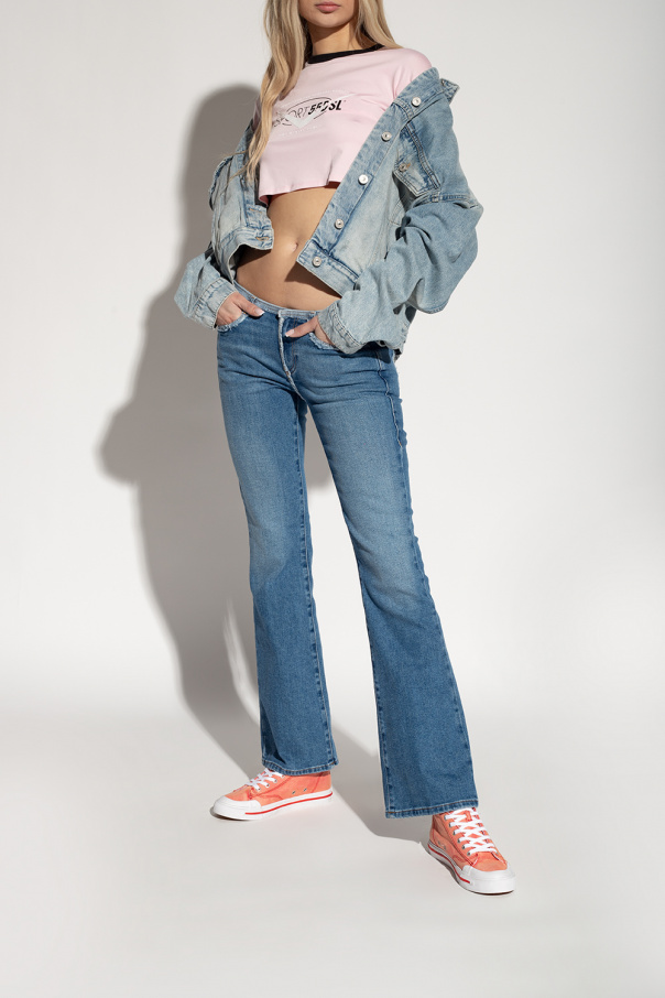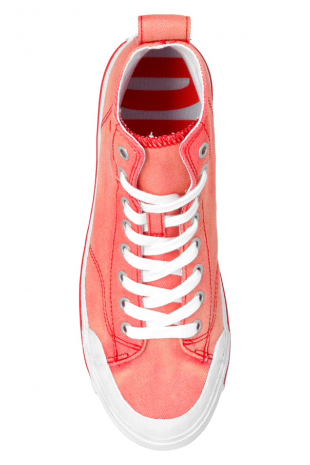 Red ‘S-ATHOS’ sneakers from Diesel. Crafted from fabric with a high-top silhouette, this lace-up model features distressed detailing, logo embroidery and a beige rubber sole.