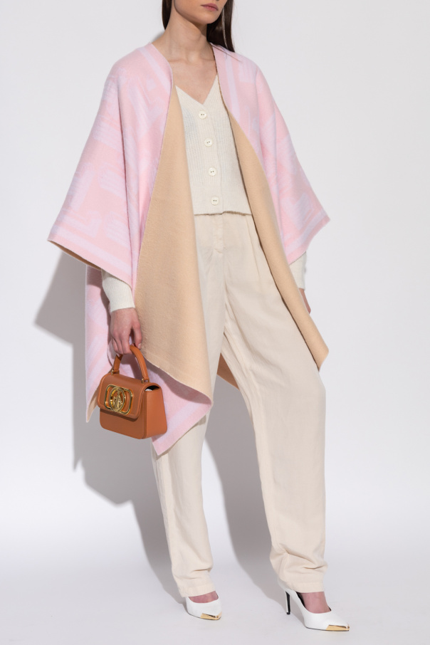 Pink poncho from Lanvin. Made of wool, this style showcases the brand's signature ‘3D JL’ motif in white and a beige lining.