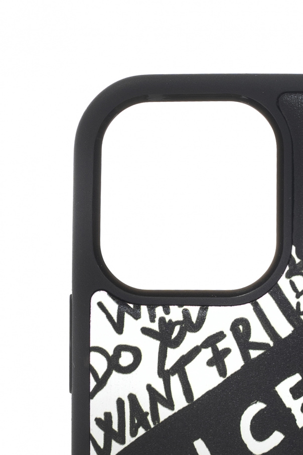 White and black iPhone 12 Pro case from Dolce & Gabbana. Crafted from calf leather, this item is enriched by a pattern and a logo detail.