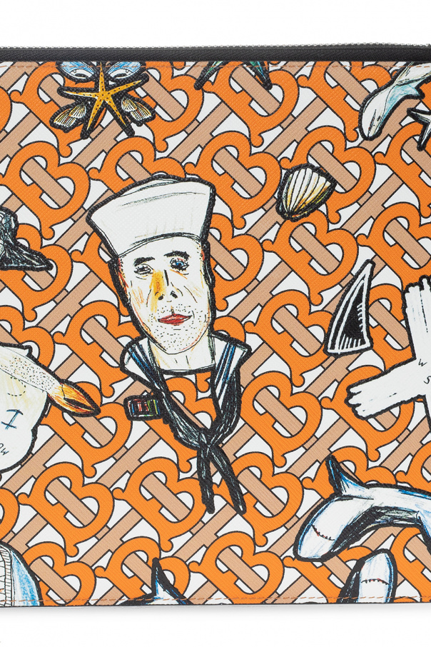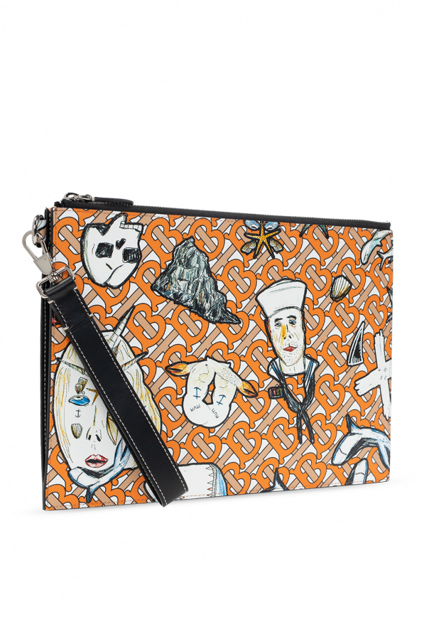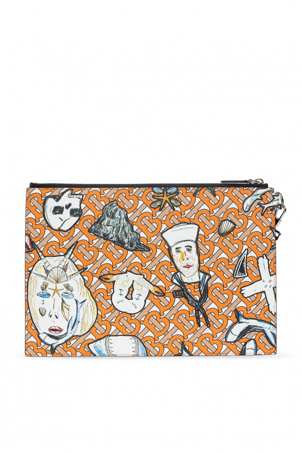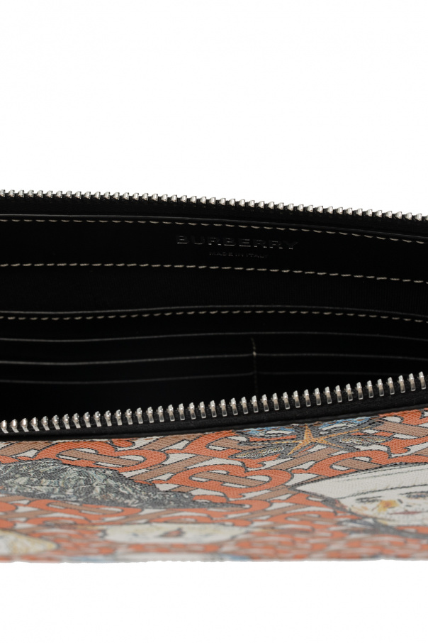 Multicoloured clutch from Burberry. Made of canvas, this design fastens via a zip and showcases a printed logo pattern, calf leather trims, silver-tone metal hardware, an attached wrist strap and one internal compartment with one slip pocket and six card slots.