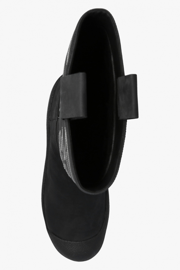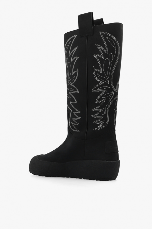 Black ‘Montana’ snow boots from Bally. Crafted from leather, this model showcases decorative cream topstitched details and a technical sole made up of five layers: shearling and cork layers which insulate from cold and provide added cushioning; EVA rubber gives added comfort; cotton fiber wadding is designed to add long-lasting durability and resistance; and the rubber Vibram® Arctic Grip sole is specifically engineered and designed to provide maximum grip on cold, iced or snowy surfaces.