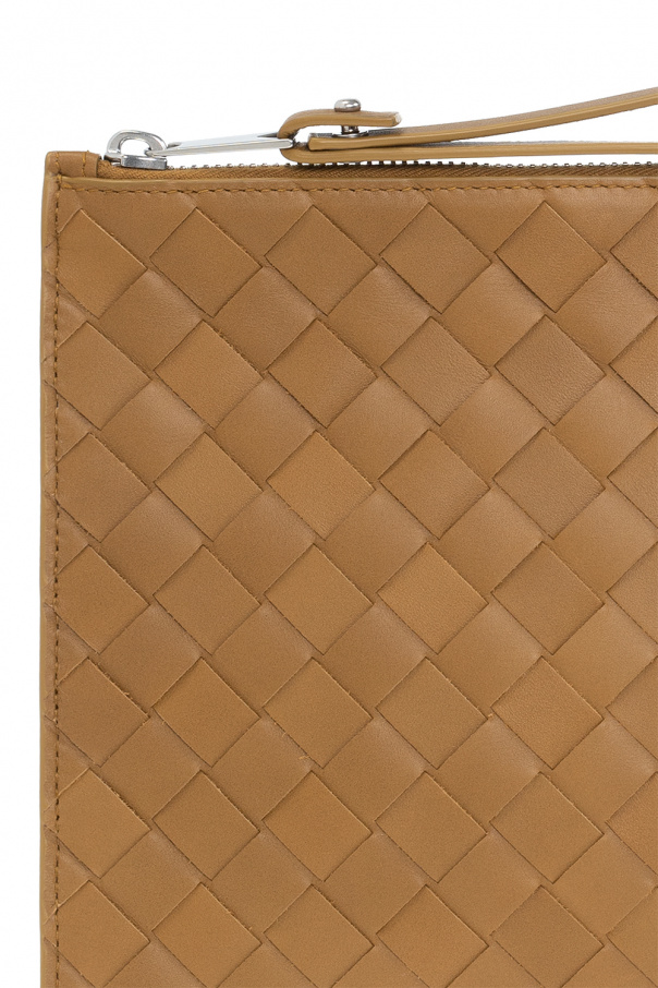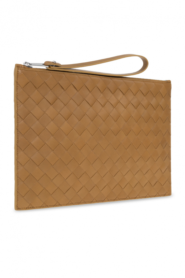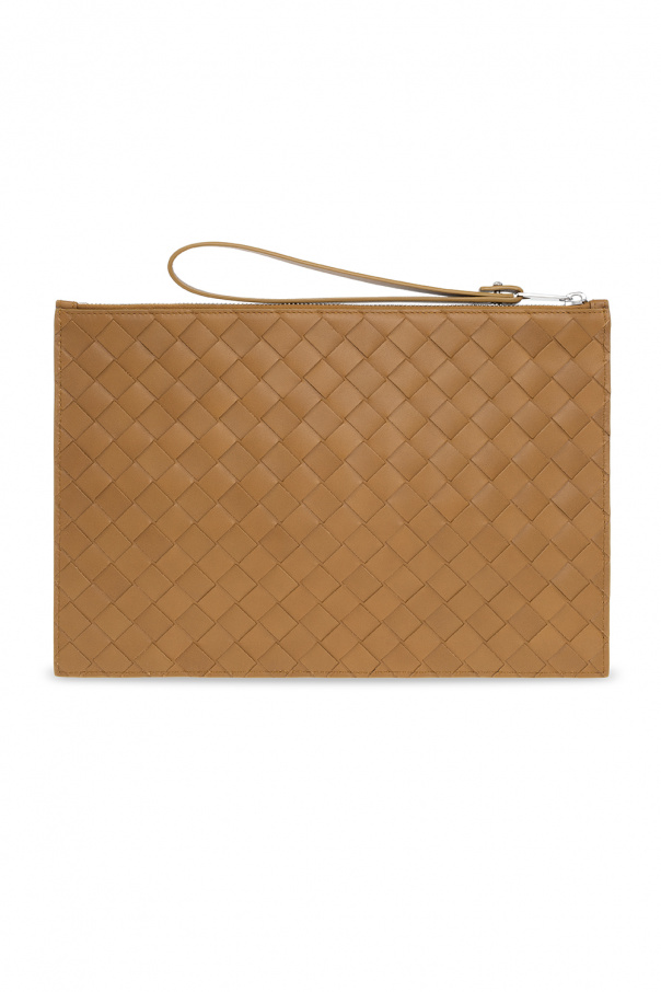 Light brown handbag from Bottega Veneta. Made of calf leather with the iconic Intrecciato weave, this model features a zip fastening with a wrist strap, one internal compartment and silver-tone metal hardware.