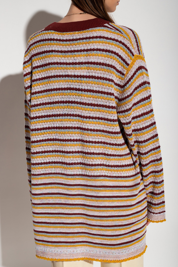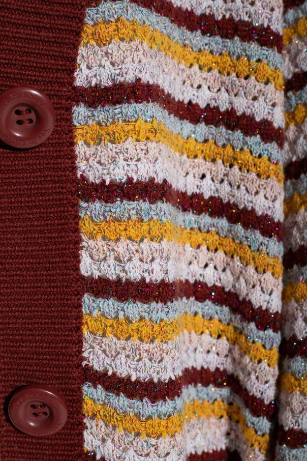 Multicoloured cardigan from See By Chloé. Crafted from a wool and cotton blend in a rib-knit design, this style features a V-neckline, button fastenings, long sleeves and colourful lurex thread trimming.